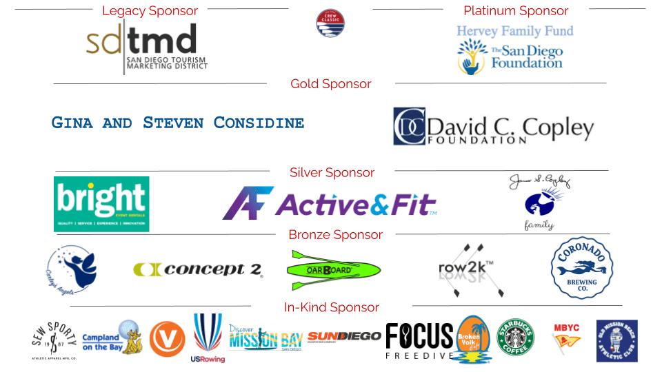 You can make a difference in the lives of rowing athletes across the country by supporting the San Diego Crew Classic. We are privileged to host military veteran competitors from Freedom Rows as well as Para athletes from all over the United States. We support “Learn To Row” initiatives each spring, and are working toward becoming the world’s greenest regatta. We are able to continue this work because our Donors, Sponsors, and Stewards make it possible.